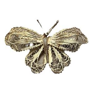 Vintage Filigree Butterfly Brooch 800 Silver Vermeil Pin Collectable