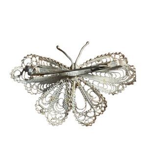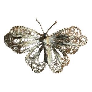 Vintage Vermeil Filigree Butterfly Brooch in Silver Tone Metal, Stamped 800 Silver