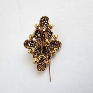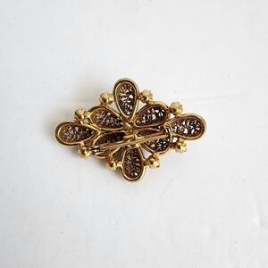 Vintage Filigree Faux Moonstone Brooch Gold Tone Metal Pin 60s Victorian Revival