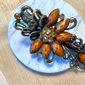 Vintage Filigree Rhinestone Metal Barrette Hair Clip