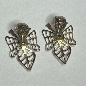 These vintage screw-back earrings, showcasing intricate filigree work and green rhinestones, add a touch of elegance to any vintage collection.