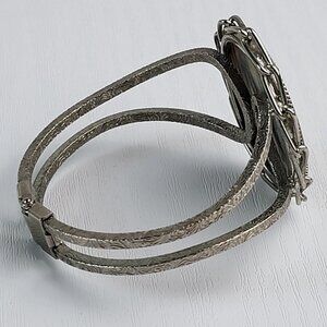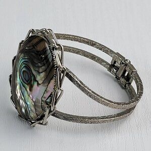Vintage Filigree Silver Tone Abalone Shell Cuff Hinged Bracelet 6.5 Inch Clamper