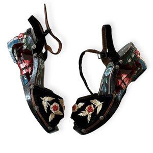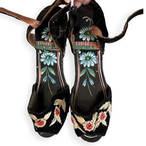 #VintageSandals, #HandpaintedShoes ,#WoodenWedge, #VelvetShoes,