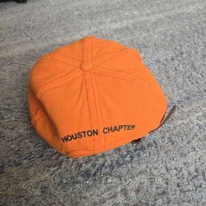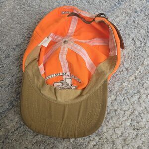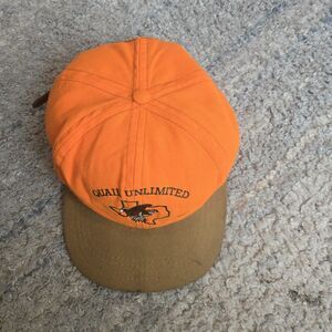 Vintage Filson Strapback Hat Hunting Orange USA Quail Unlimited Texas Leather Strap. Some sign of wear, some stains. Please take good look at all of the pictures for the exact condition.