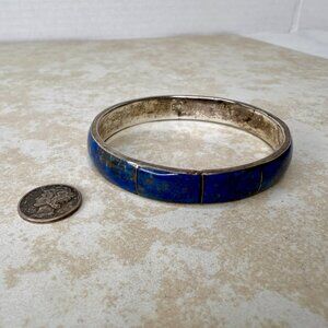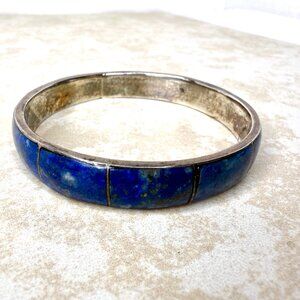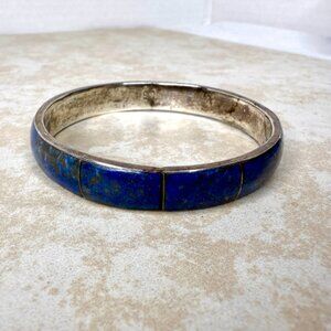Vintage Fine 970 Silver Inlay Blue Lapis Lazuli Bangle Bracelet 26.5 Grams