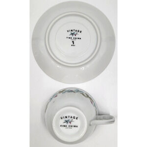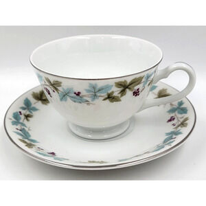 Vintage Fine China Japan 6701 Grapevine Blue Green Leaves Cup & Saucer