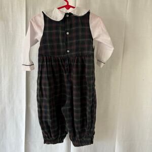 Vintage Fine & Dandy Baby Girl Embroidered Train Bubble Romper 12 Months Plaid
