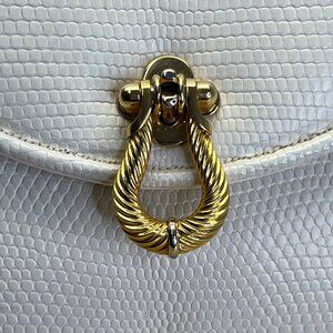Vintage Finesse White Faux Lizard Leather Handbag Gold Chain Strap & Twist Clasp