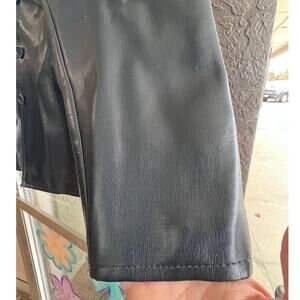 Vintage Fingerhut fashion dark navy blue faux leather jacket with button front and 2 pockets. There is some discoloration around the neckline, but there are no major stains, holes, or tears. The tag says size 12. Please check measurements before purchasing!