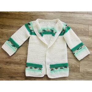 Vintage Finished Grandma Crochet Cardigan Sweater Overshirt Unique Boho Handmade