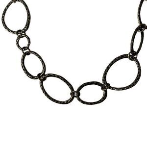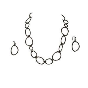 Vintage Finished Textured Oval Linked Necklace And Earrings Set OS