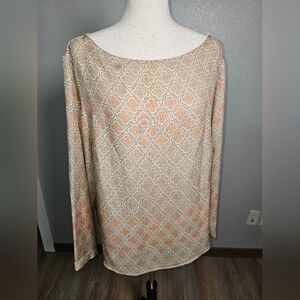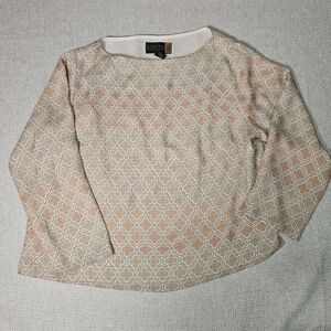 Vintage Finity Naturals 100% Silk Blouse with Cute Salmon and Cream Print. 2x