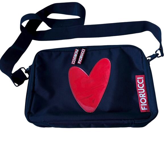 Vintage Fiorucci Crossbody Bag Black Canvas Red Heart Messenger 11"x7.5"x2"