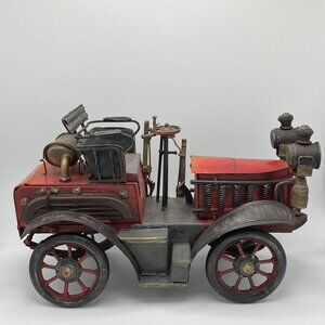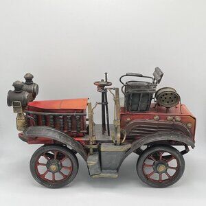 Vintage Fire Engine Truck Tractor Red Tin Metal Model Decor Collectible Old