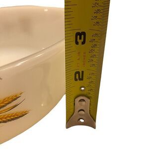 Beautiful mid-century Fire King casserole featuring the iconic golden wheat design. Classic white milk glass with easy-grip handles. Perfect for collectors, vintage kitchen lovers, or everyday baking and serving.