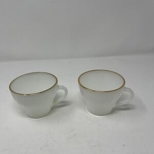 Vintage Fire King Anchor Hocking Coffee Tea Cup White with Gold Rim Set of Two