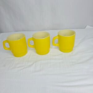 Vintage Fire King Anchor Hocking North West Compass Yellow Black Coffee Mug 3 PC