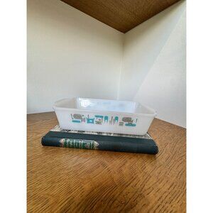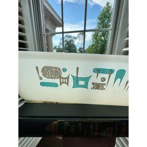 Vintage Fire King Atomic Blue Heaven Loaf Pan 5.5" X 10.5" X 2.5" White Glass
