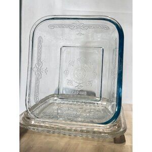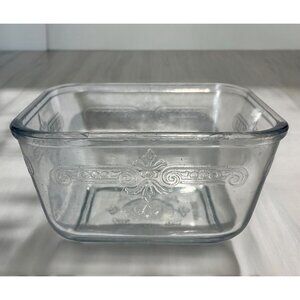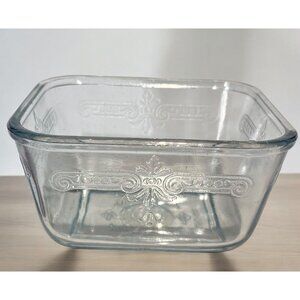 Vtg Fire-King Clear Depression Glass Floral Refrigerator Dish 3" x 4.5" with Lid.