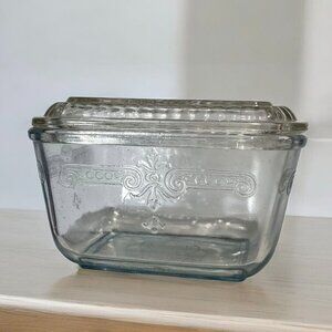 Vintage Fire King Clear Glass Refrigerator Dish - Elegant Retro Storage With Lid