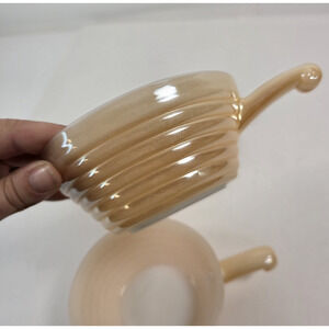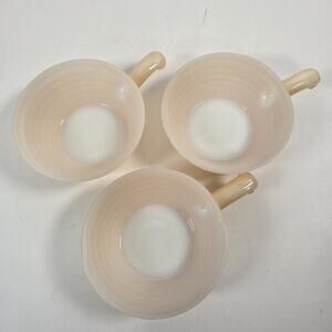 Vintage Fire King Peach Luster Set Of 3 Ovenware Beehive Soup Bowls With Handles