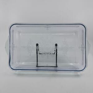 This Fire King Small Glass Baker bundle in a delicate light blue and clear glass feature a charming embossed flower design. These anre durable clear glass. Ideal for baking individual servings, it combines vintage elegance with practical functionality, making it a lovely addition to any kitchen.