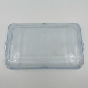 Fire King, Small Glass Baker, Light Blue Glass, Clear Glass, Embossed Flower Design, Vintage Bakeware, Retro Kitchenware, Decorative Glassware, 1950s Cookware, Collectible Bake Dish, Classic Design, Elegant Glass Baker, Floral Embossing, Durable Glass, Charming Bakeware, Retro Home Decor, Mid-Century Kitchen, Timeless Glass Dish, Functional Bakeware, Antique-Style Glass