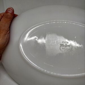 Vintage Anchor Hocking Fire King milk glass platter in the wheat print. Please see pics carefully as this is in good vintage condition with scratches from use, the largest one is at the top center of the front of the platter, see the last pic for that one. Length is 11.78".