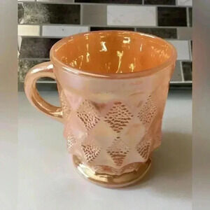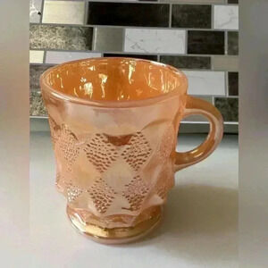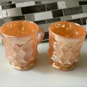 Vintage Fire King set of 2 Peach luster Mug, Quilted Diamond ,Kimberly pattern