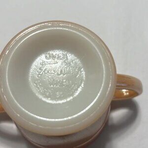 This vintage Fire-King set showcases a glossy peach lustre glaze with a laurel pattern. Durable and timeless, ideal for collectors or daily use.