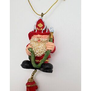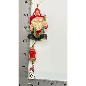 Vintage Firefighter Santa Claus Christmas Tree Ornament Dalmatian Fire Hydrant