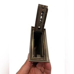 Really neat first Federal coin book Bank leather face and metal body vintage piece. Front Displays very well, back shows a lot of wear. Still a cool piece. Preowned. See all pics.