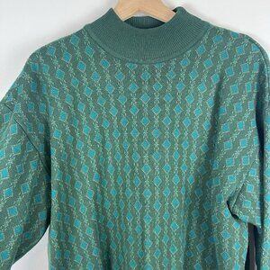 Vintage First Issue Lambswool Blend Kelly Green Mock Neck Sweater sz M Preppy