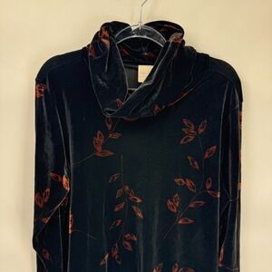Vintage First Issue Liz Claiborne Turtleneck Sweater XL Black Gold Velvet Fall