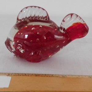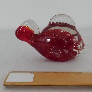 Vintage Fish Figurine Paperweight Red Glass Clear Cased Controlled Air Bubbles