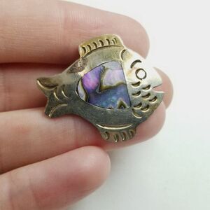 Vintage Fish Shape Brooch, Silver Tone and Mother of Pearl Pin, Estate