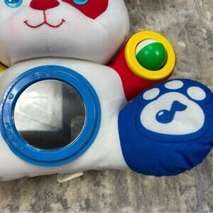 Vintage Fisher Price 1992 Discovery Busy Bear Plush Baby Toy. Very good condition! Very clean. No stains or tears. Textured material ears, mirror belly, squeaky foot, rattle foot, teething ring hand, rattle hand.