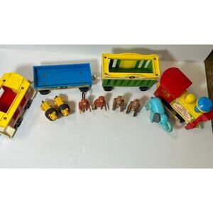Vintage Fisher Price Circus Train •2 Lions • 2 Monkeys • 2 Bears • 1 Elephant. Train and animals show wear, please see photos. Wheels operate, “smoke stack” makes toot train sound. Doors open and close. From a clean smoke free pet free home.