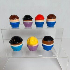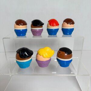 This lot includes seven vintage Fisher-Price Toddle Tots figures from the 1980s–1990s. These adorable rounded figures were part of the Toddle Tots line, designed as a safer, chunkier version of the classic Little People. The lot features a fun mix of characters with different hair colors and outfits.