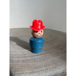 Toy as some wear and tear from play/use. Wood figurine shows age and paint cracking, scuffs on hat. Tractor hitch has bite marks. Please see all pictures for condition.