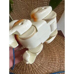 Adorable classic pull toy by Fisher-Price featuring a spotted puppy with bright blue eyes and a red collar. Comes with the original pull string—perfect for toddlers or collectors of nostalgic toys!