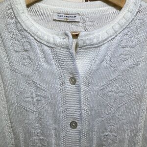 Vintage Fisherman Cozy Sweater - Yarnworks Ivory Knit Button Cardigan -XL