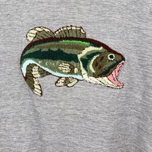 Vintage Embroidered Fish Sweatshirt Gray Outdoors Unisex Pullover Bass Size M/L
