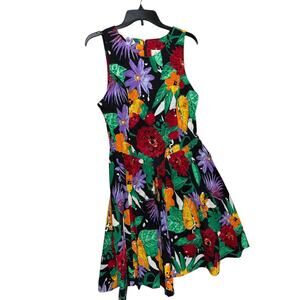 Vintage Fit & Flare Dress Smocked Floral Sleeveless