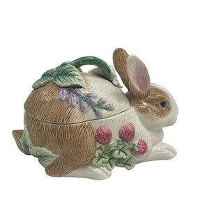 This Fitz & Floyd Essentials Bunny Box was manufactured in 2000 and is an original collectible from the Fitz and Floyd collection. It is perfect for Easter or any seasonal occasion and is a must-have for any collector. Don't miss your chance to own this unique piece that will surely be a conversation starter among your friends and family. See pictures, please. Ships quickly