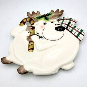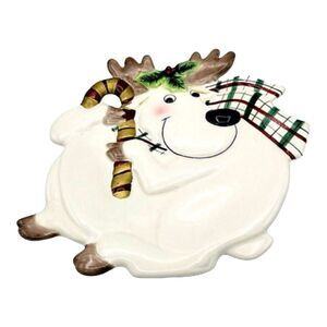 Vintage Fitz & Floyd Christmas Reindeer Canape Plate Cookies Candy Tray 10" Cute