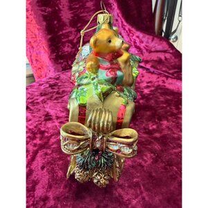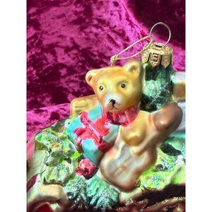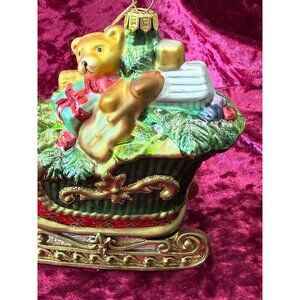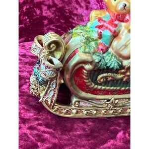 Vintage Fitz & Floyd Festive Bear & Christmas Sleigh Toy Bag Ornament