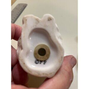 Spice up your kitchen with these vintage Fitz & Floyd kissing Monkey salt and pepper shakers. Made of porcelain, these small shakers are shaped like adorable monkeys and come in a set of two. The white color and animal shape make them a perfect addition to any collection or a unique gift for a friend.