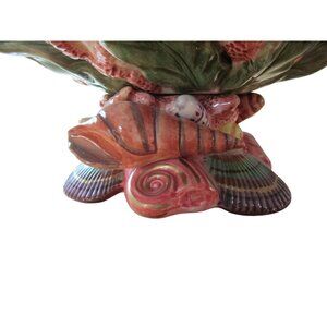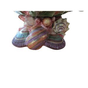 A meticulously crafted ceramic centerpiece that captures the intricate details of marine life, featuring a sculptural shell design with layered textures and nuanced color gradients. About 11" wide, 8" tall. Part of the Fitz and Floyd Oceana, Multi Color Shells. Y2K Limited Edition, Retired. Very large, heavy and intricate, will require extra packing to ensure safe arrival.