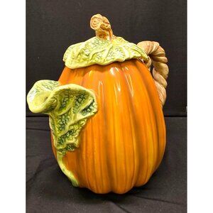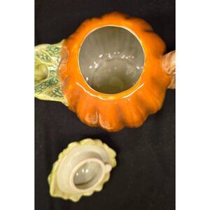Vintage Fitz & Floyd Omnibus Fall Halloween Pumpkin Shaped Teapot with Lid